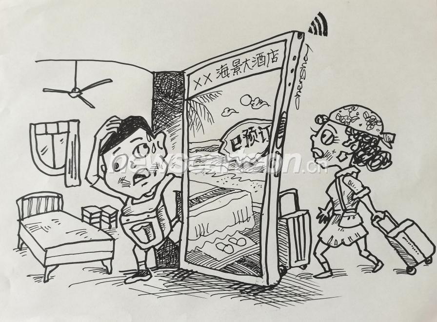 据有关报道:上千元酒店"海景房"的海景是图片包装出来的,大床房的床还没有沙发大,遭到多地网友旅游者猛烈指责,称线上订酒店是“照骗”。某酒店在面对消费者投诉时辩称,宣传图片只是“艺术美化效果”。这样的酒店用精心装饰和拼合照片和文字来误导消费者,不是真正的艺术而是骗术......(略)。