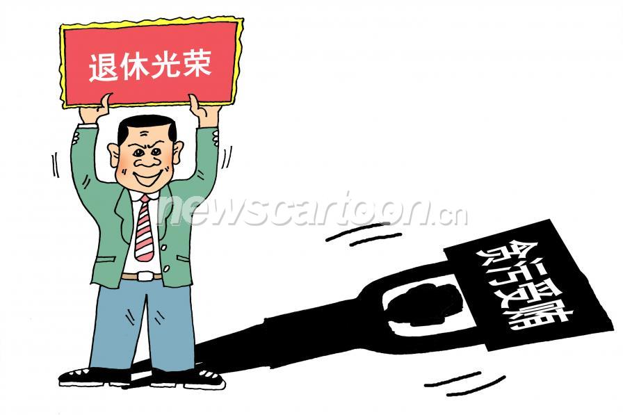 背影,退休,贿赂,工作作风,工作问题,违纪,倒查,反腐漫画 ,