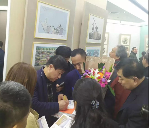 由中国美术家协会漫画艺术委员会、山东省美术家协会、山东省漫画家协会、山东工艺美术学院、济南日报报业集团、鲁商传媒集团、舜耕山庄集团主办,大舜美术馆、山东商报承办的《漫笔丹青一一黎青画展于2019年3月16日下午在济南舜耕山庄大舜美术馆举办了盛大的开幕仪式,不仅有众多热爱绘画的学生和市民参加开幕式,更有省市有关领导和各界嘉宾代表出席开幕式并讲话。现场共展出了黎青先生的漫画作品40件,谐趣水墨人物画作品70余件。