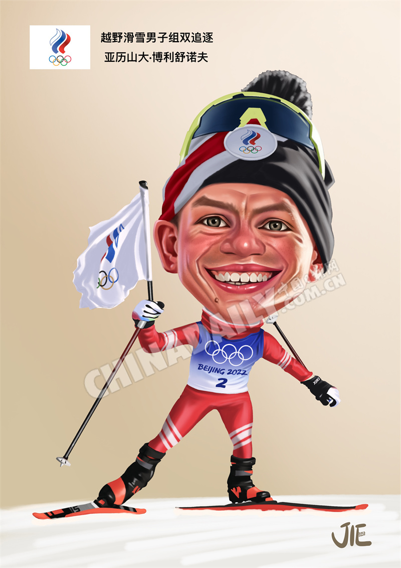 2月6日 越野滑雪男子双追逐:俄罗斯奥委会选手亚历山大·博利舒诺夫--绘画:李永杰