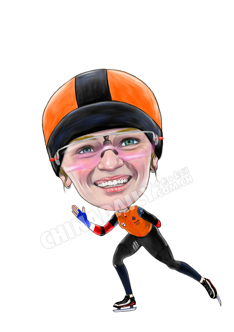 2月5日 速度滑冰女子3000米:荷兰选手伊雷妮·斯豪滕 绘画:王山甲