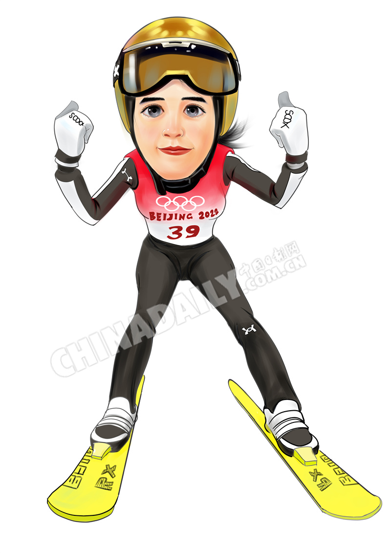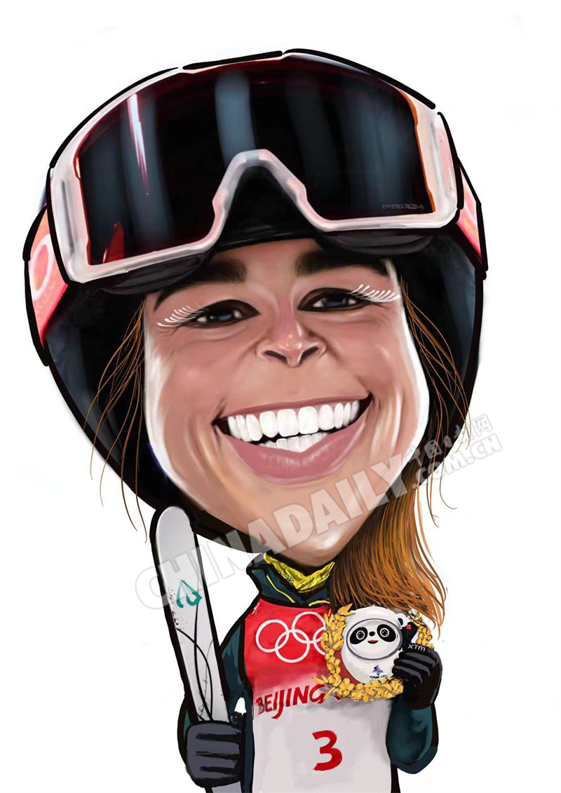 2月6日 单板滑雪项目女子坡面障碍技巧:新西兰佐伊·萨多夫斯基·辛诺特--绘画:胡旻