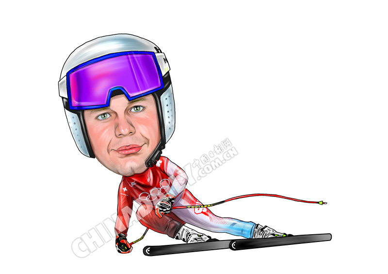 2月7日 高山滑雪男子滑降项目:瑞士选手贝亚特·费乌兹--绘画:王山甲