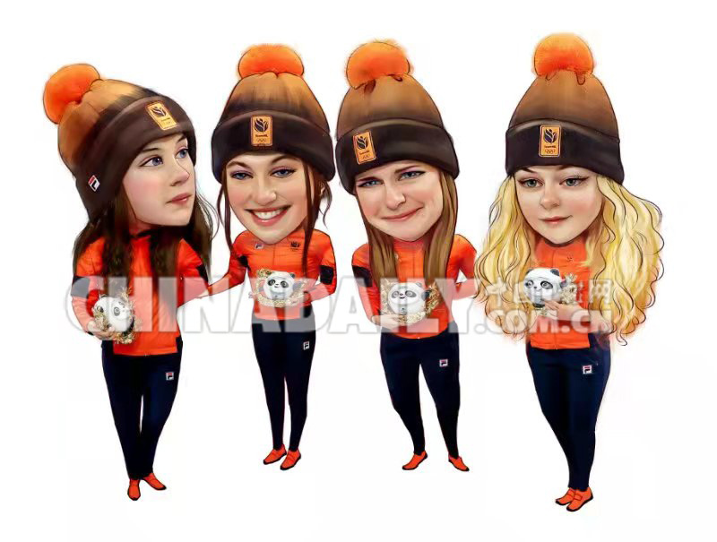 2月13日 短道速滑女子3000米接力:荷兰队 绘画:黄京武