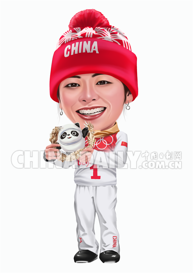 2月15日 自由式滑雪女子坡面障碍技巧:瑞士选手玛蒂尔德·格雷莫德 绘画:王山甲