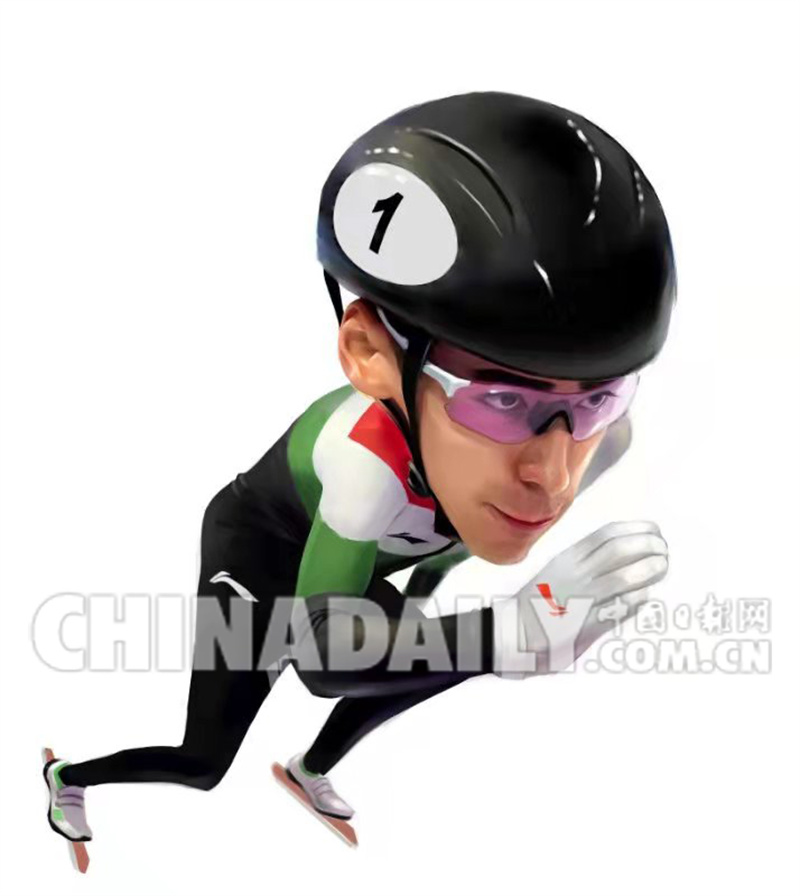 2月13日 短道速滑男子500米:匈牙利刘少昂 绘画:黄京武