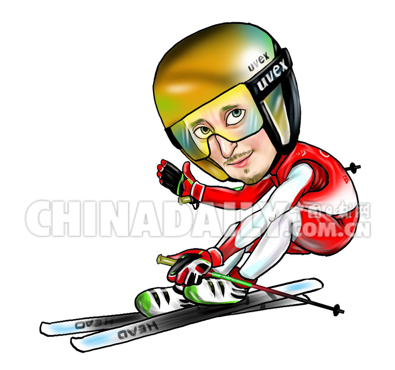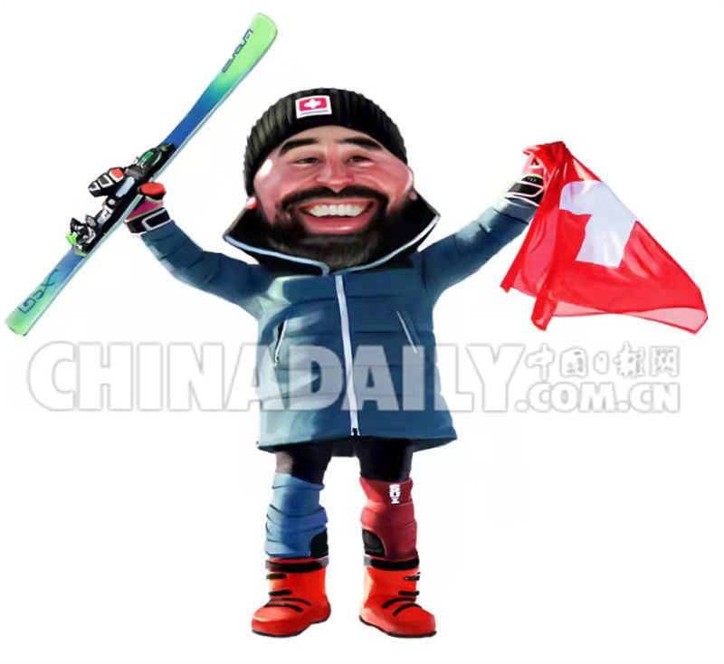 2月18日 自由式滑雪男子障碍追逐:瑞士选手里安·雷格兹 绘画:黄京武