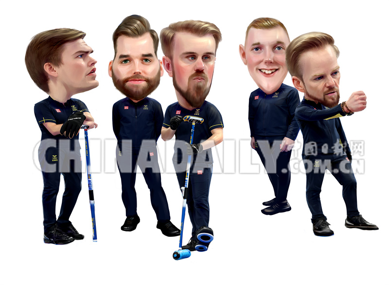 2月19日 男子冰壶:瑞典队 绘画:黄京武
