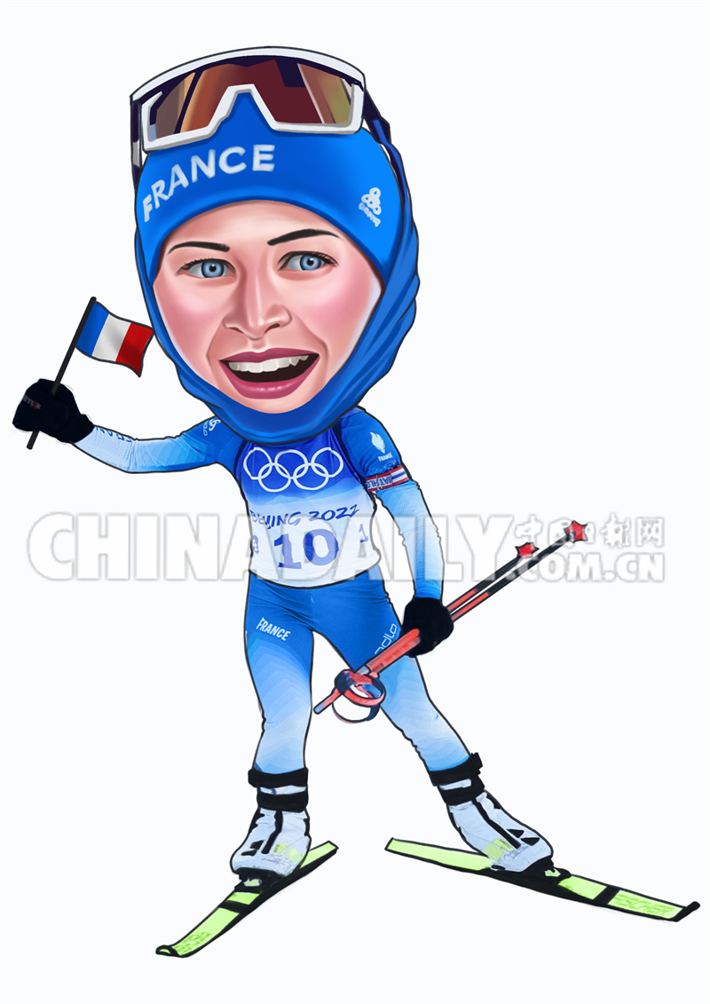 2月18日 冬季两项女子12.5公里集体出发比赛:法国选手朱斯蒂娜·布雷萨·布歇 绘画:李永杰
