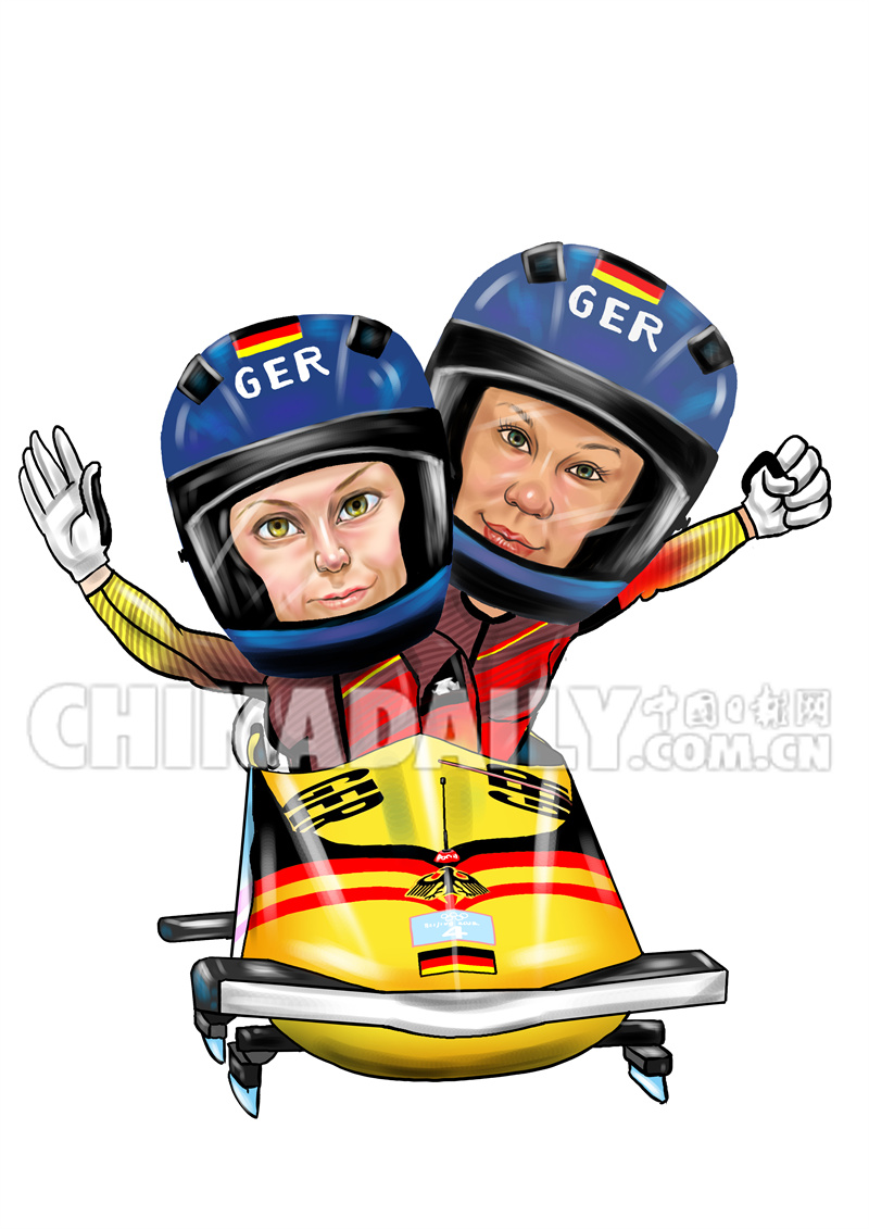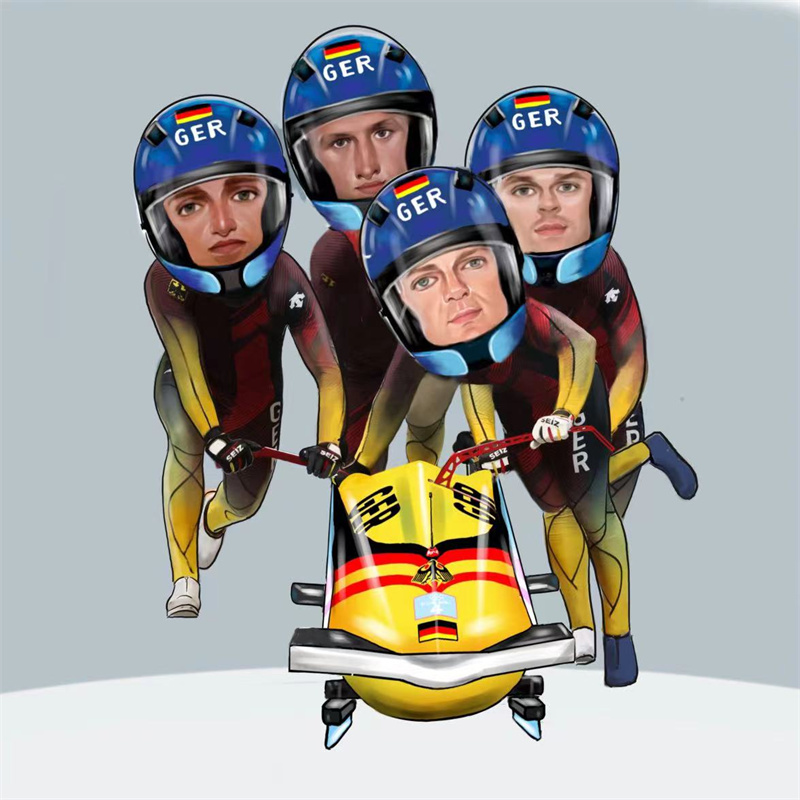 2月20日 四人雪车:德国队 绘画:丁月光