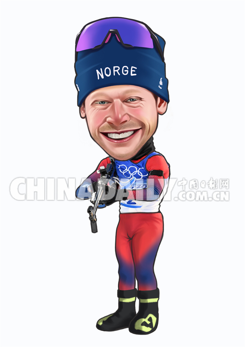 2月18日 冬季两项男子15公里集体出发比赛:挪威手约翰内斯·廷内斯·伯厄 绘画:李永杰
