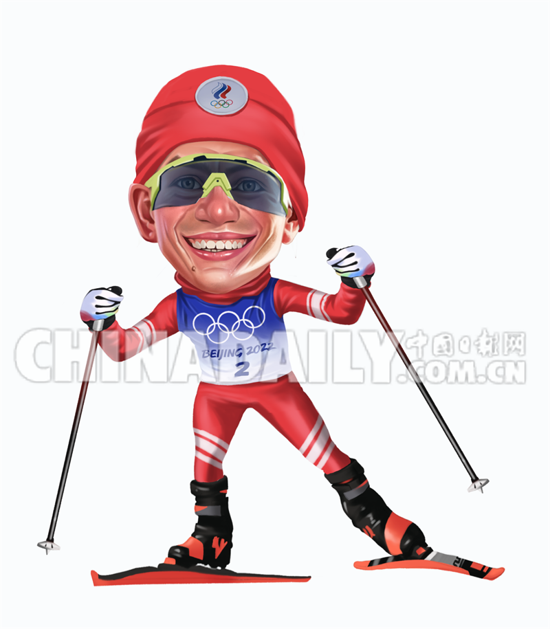 2月19日 越野滑雪男子50公里集体出发(自由技术):俄罗斯奥委会选手亚历山大·博利舒诺夫 绘画:李永杰