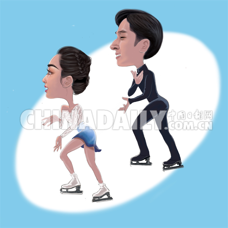 2月19日 花滑双人滑:隋文静 韩聪 绘画:丁月光