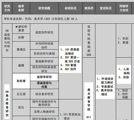 摘自广州美术学院2016年硕士学位研究生招生专业目录——