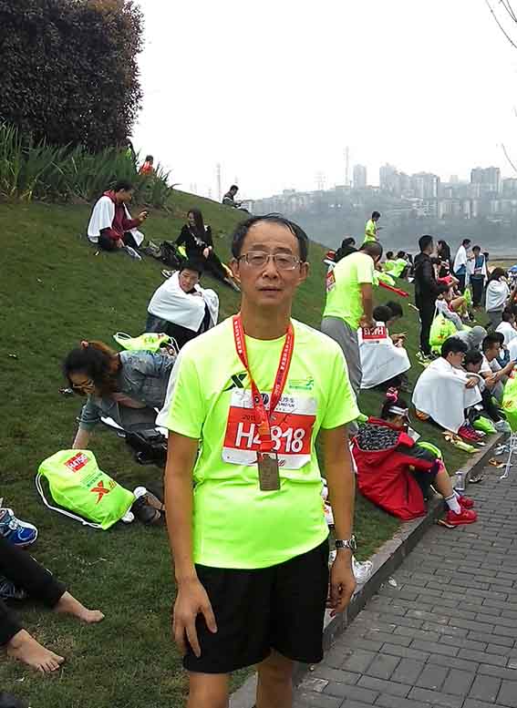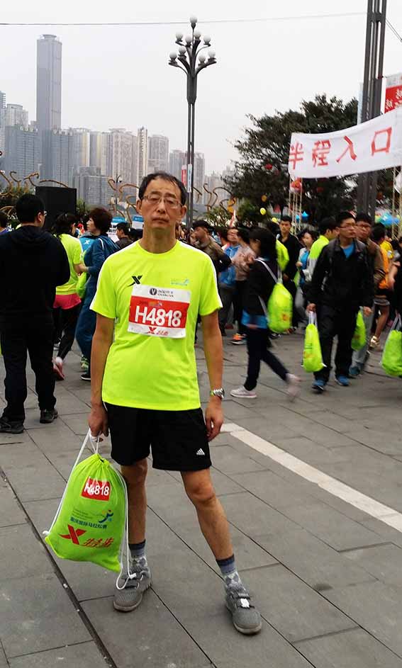 前日参加了重庆国际马拉松赛的半程赛,用时2小时29分11秒跑完21公里。赛前两月内仅练习了跑步十来次,大多仅跑了5公里,另跑了三次7公里、一次10公里。年过六旬有生以来第一次跑如此长的距离,对我来说是一次极大的挑战,最后三公里感到已抬不起脚,但凭着三十多年前跑过几年长跑及坚持了二十年冬泳的打下的基础,还是咬紧牙关坚持跑到了终点!