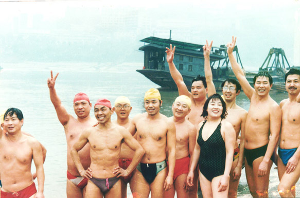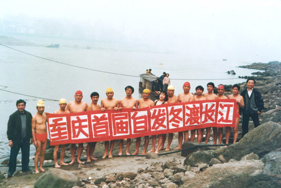 1996年2月初首次冬渡长江,上图左7、下图右3为本人。