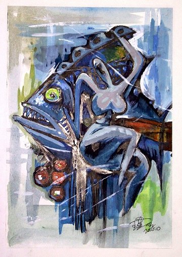 是的,我们的即兴创作的思维应该比其他画种的作者更丰富和快捷些、荒诞些,这是我们的优势,如何运用我们的优势去开拓发展的空间,王老师给了我们作了好示范。