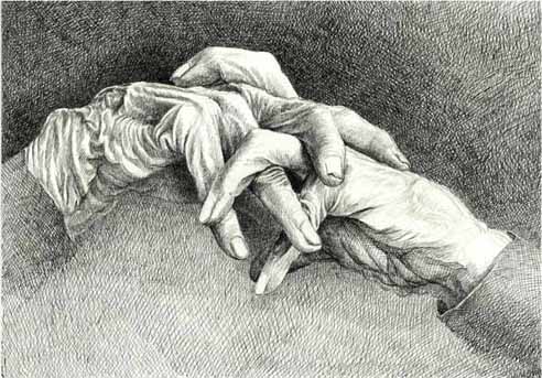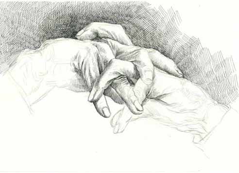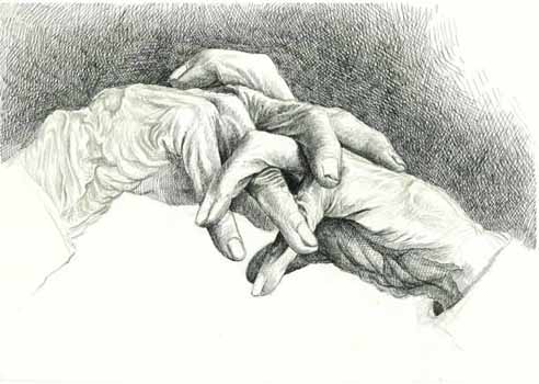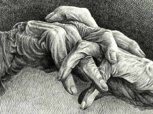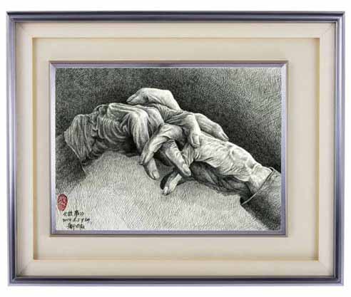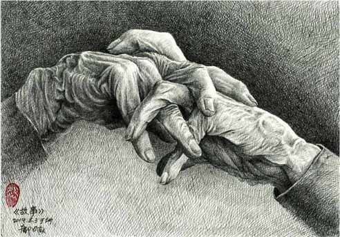 邝飚先生为母亲而作的这幅手部特写素描