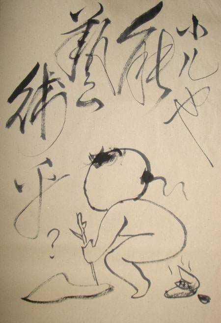 如果石匠把这样的涂鸦取个名字《献给某某混混“漫画家”》,肯定是要犯有失逻辑之错误滴。从涂鸦画面的本身看,作为漫画的元素都有,也不存在逻辑问题。问题在于它产生的效果会有逻辑问题,对所涉及的对象,就有失准确了。再怎么说,某某人思想浅薄,人品不佳,技艺单一甚至粗劣,也还没拙劣到小儿拉屎的程度。所以,石匠不多画漫画是有原因的。石匠之所以喜欢文字的东西,因为在文字里尽可以展示逻辑的力量。比如《这幅漫画的味在哪里》这篇文字,石匠就欢迎别人从逻辑上把它批倒批臭,没有逻辑严密的批判,像《献给某某混混“漫画家”》这样的涂鸦,一分钟画一幅,真的不足为训。石匠弄这么一个涂鸦出来,真的不是为了要针对某某人,而是为了说明一个道理:画漫画不仅要考虑漫画立意构图本身的逻辑问题,更要考虑效果可能产生的失于逻辑的问题。