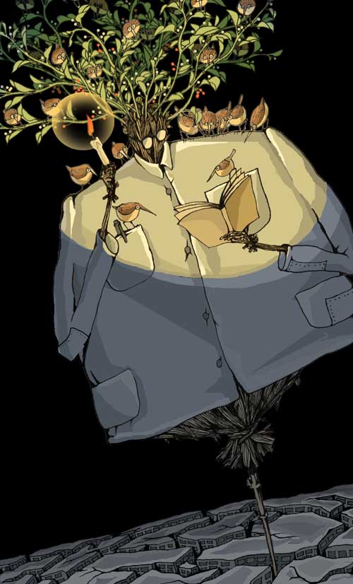 从立意构图,到黑白关系.从绘画技法到色彩搭配,新颖而成熟!深厚的造型能力和驾御绘画语言的能力非一般浅浮于事者所能为!赞!学习!