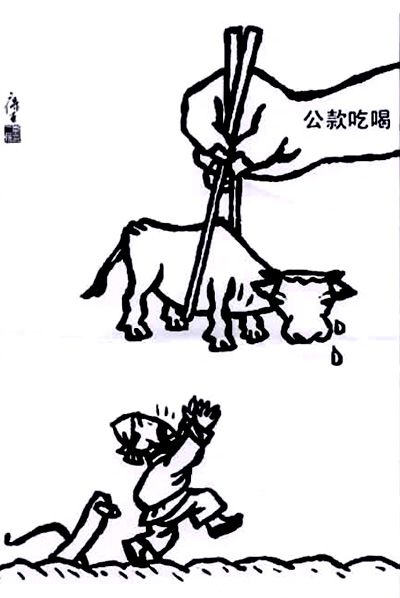 李二保老师的《官煤勾结》获得了《黑龙江日报》“2005凯旋城杯”新闻漫画大赛一等奖,油老师也曾有一幅《黑矿主》入选了《子恺杯中国漫画展》,这一主题成了大家这次交谈的热点。