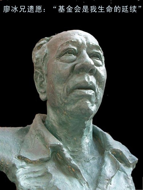一个犹如“圣经之门”的“廖冰兄纪念景观雕塑”在广州市少年宫湖畔树林扎下了根,廖冰兄之女廖陵儿宣布,为继承老人遗愿,廖冰兄人文专项基金会将全面开展“展翅计划”,解救社会失足青少年重归人生正轨。