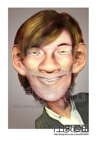刚做的任贤齐肖像漫画,用时8小时在铅笔稿上着色电脑处理,使用磁盘空间1.5G,全尺寸40厘米x26厘米。请各位前辈、高手、同道人士指点! 我的博客:http://blog.sina.com.cn/sun8922007