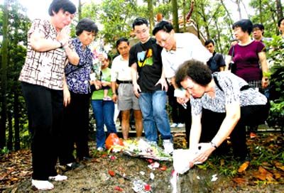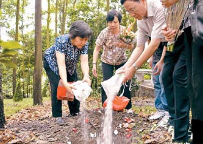 五月二十日,著名漫画家廖冰兄老人的骨灰和夫人罗凤珍一道,长眠在白云山思园的相思林中。思园位于白云山麓永泰村马鞍山下,廖冰兄老人的骨灰埋在这里,覆土后种上树,不立碑、不烧香,不做任何标志。