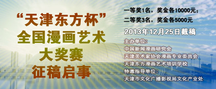 为了弘扬漫画艺术,繁荣漫画创作,经天津美术家协会漫画专业委员会与天津东方漫画艺术培训学校研究决定,联合举办全国《天津东方杯》漫画艺术大奖赛。