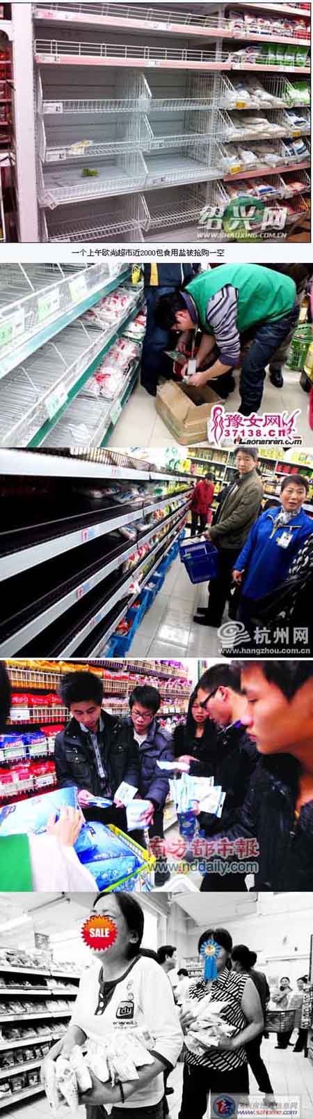 人家日本遭这么大的灾都没乱,中国倒先疯了;人家韩国跟日本离那么近也没有全民抢盐,中国人这么一点风吹草动就自乱了阵脚,真是丢人啊。