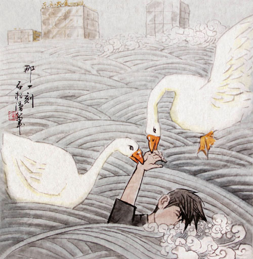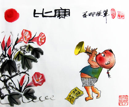 画水墨画的不少,但用水墨表现时事时政和生活.讽刺等内容的很少,而多为花鸟鱼虫等休闲小品,不知何故,我-值关注着。-代大师和部分名家却不是这样。
