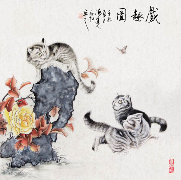 《戏趣图》工笔画(68x68cm)应友人之邀而作的“行画”