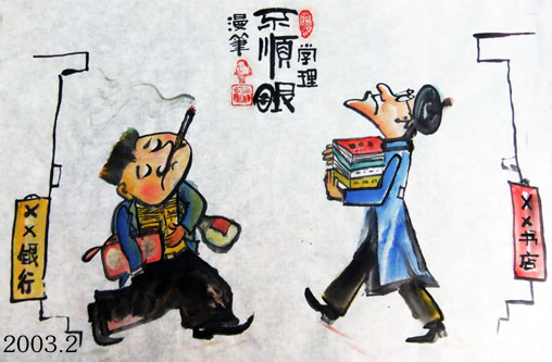 搞漫画的人都应练就一些功夫,特别是我们这些业余作者,没受过专业训练,更应练功夫。像石松先生,国画,油画等功夫都很深,他有了好点子,画起漫画来就得心应手了。