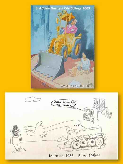 类似.<讽刺与幽默>2008年曾登载韩国作者类似作品,元素为飞机,另有早期作品,元素是盲人.