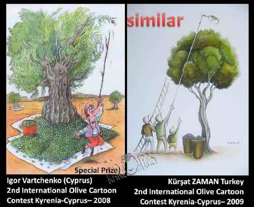 CYPLUS 2008"OLIVE"主题国际漫赛出版画册,其2009年获奖作品基本都是类似的,被国际漫画界形容为"全军覆没"!