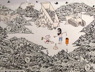 《家园》始创于2002年,发表于2003年,后来又改画为油画在央视环境漫画竞赛和2005年的罗马尼亚国际竞赛及联合国国际漫画竞赛获奖。