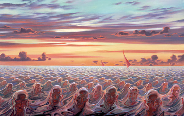意大利总理贝卢斯科尼经常因为对女性言语轻佻和桃色新闻不断遭到媒体的批评和公众的讽刺。意大利画家菲利波·潘塞卡2009年在油画中把这名已经72岁的“大嘴巴”政客狠狠恶搞了一下。在潘塞卡的这幅作品中,贝卢斯科尼化身赤裸着身体的天使,用巨大的翅膀亲昵地搂着意大利机会平等事务部长玛拉·卡尔法尼亚,含情脉脉地盯着自己的女部下。而卡尔法尼亚则一副欲拒还羞的模样,目光聚焦在贝卢斯科尼被布条遮着的隐私处。