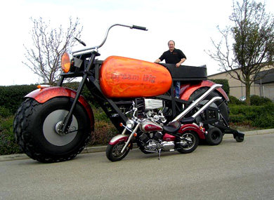 这就是世界吉尼斯记录中最大的摩托车,15英尺高,重达6,500磅(3吨),制作者Greg Dunham花了3年的时间才把他制作完成,总共用了30万美元。它的大小如同一辆大卡车。