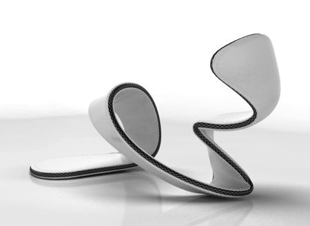 伦敦设计师朱利安·海克斯设计了一双没有底板的鞋子,鞋子从前脚掌开始缠绕足弓,最后给脚后跟和脚踝以支撑。