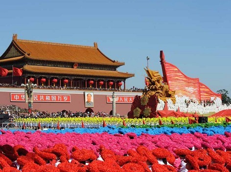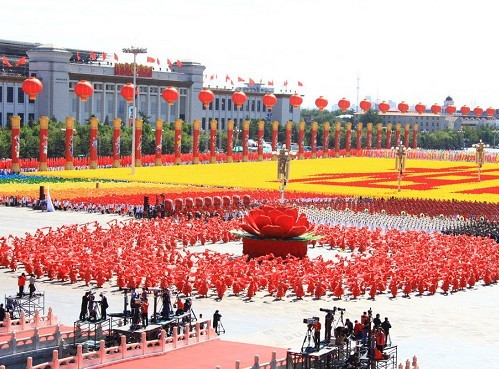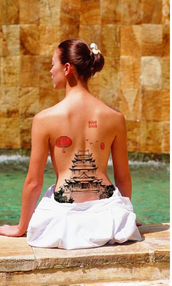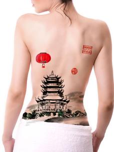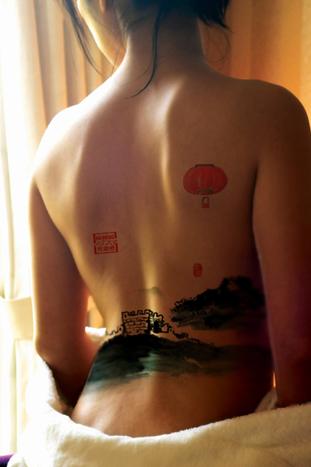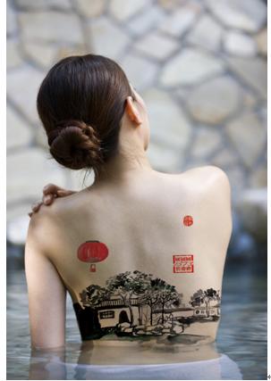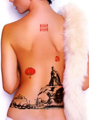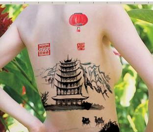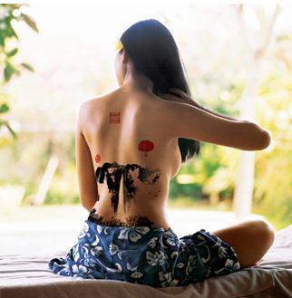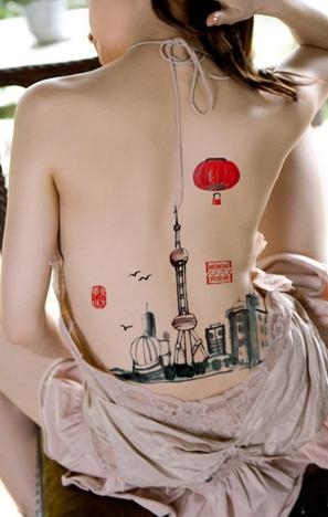 艺校美女集体裸背展示爱国山水画为国庆献礼