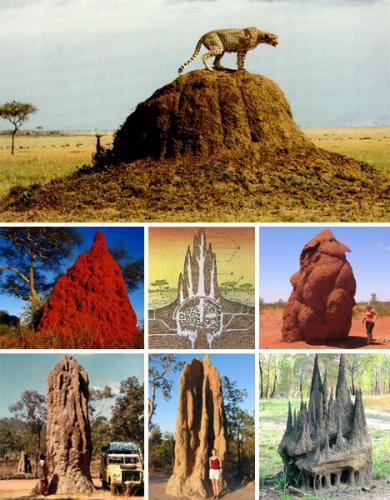 白蚁是一种令人惊叹的动物。蚁后比普通的兵蚁和工蚁大30倍,为了确保家族繁盛,蚁后平均每分钟产下30个卵。可是,比起它们建筑的自然奇观,相对于他们的身体,白蚁造出动物界最大的建筑结构。白蚁的体长约0.4英寸(约1厘米),但它们建造的蚁穴重达数百吨,最高可达40英尺(约12.2 米),这个数字相当于人类造出4600英尺(约1402米)的大楼!更令人不可思议的是,40英尺只是地面部分,它们还能在地下挖出225英尺(68.6 米)深的洞穴。
