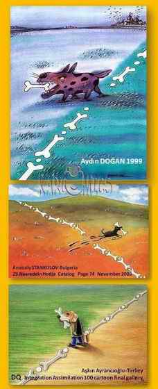 First cartoon website who started cartoon similarities was Tabriz Cartoons and then websites like Don Quichotte or Ismail Kar continued similarities in a serious way. Julian Pena-Pai has dedicated a long time for this issue. Results of contests started to have similarities or plagiarisms. Jurors started to have problems in making decisions. Cartoonists started to rethink their ideas and themes.