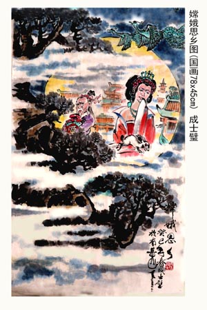 嫦娥思乡图. 为美国南加州大学杰纳特博士新著插图之一