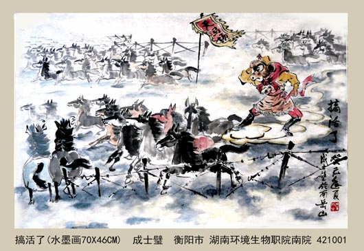 成老师有很多可圈可点的作品,令人过目不忘!目前除了一些重大赛事之外,我提议成老师挤出时间将以往获奖的及出版过的作品如《机遇》等,用再大一些的宣纸重画整理,这可是一批极有价值之作!原画作品留世意义非凡!