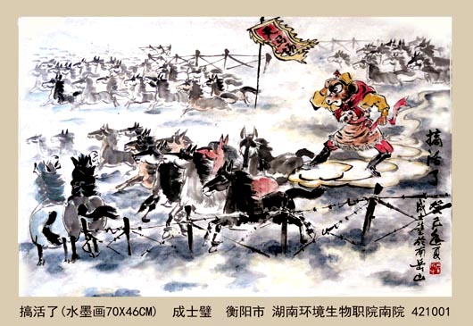 成老师毕竟是教授,既然是作水墨漫画,首先是漫画,然后才是水墨之用,笔墨爽利而简洁,自然而不做作,笔墨相辅于趣味,恰到好处。笔墨过了,不仅喧宾夺主,更不屑于人齿的是卖弄。笔墨不行,那就惨不忍睹了。教授必定高见于俗夫,所以能够驱避于这两病。成老师笔墨取自然爽利之用,石匠是很欣赏的。举报 回复# 695楼