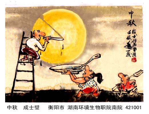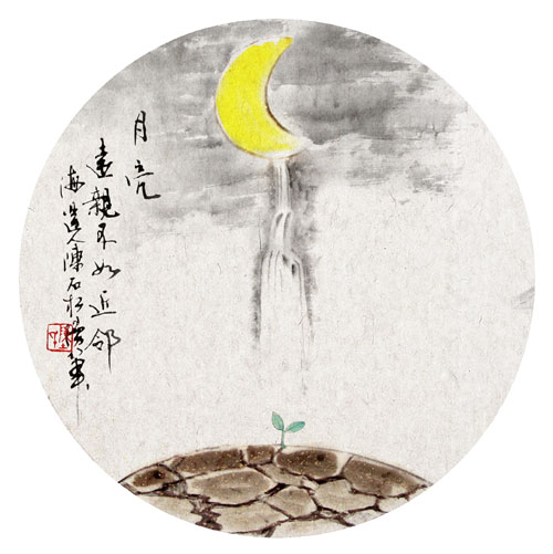 我刚才和几位艺友欣赏您的这件"月亮"大作时,大家都乐了!创意幽默绝妙!