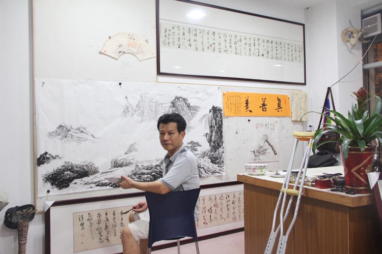 快沒烟抽了,赶着画一张八尺山水,可换二条硬盒中华。哈哈,又可省800元烟钱了。