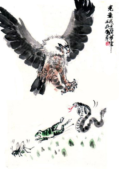 看来这先生对这件作品感兴趣。欢迎前来指导!你仅将老鹰提高了-点,其它原封没动,这样疏密关系及效果似乎好些,谢谢!我还不知你尊姓大名,也欢迎高手在这也来-件老鹰的作品,让大家-起学习不是更好?